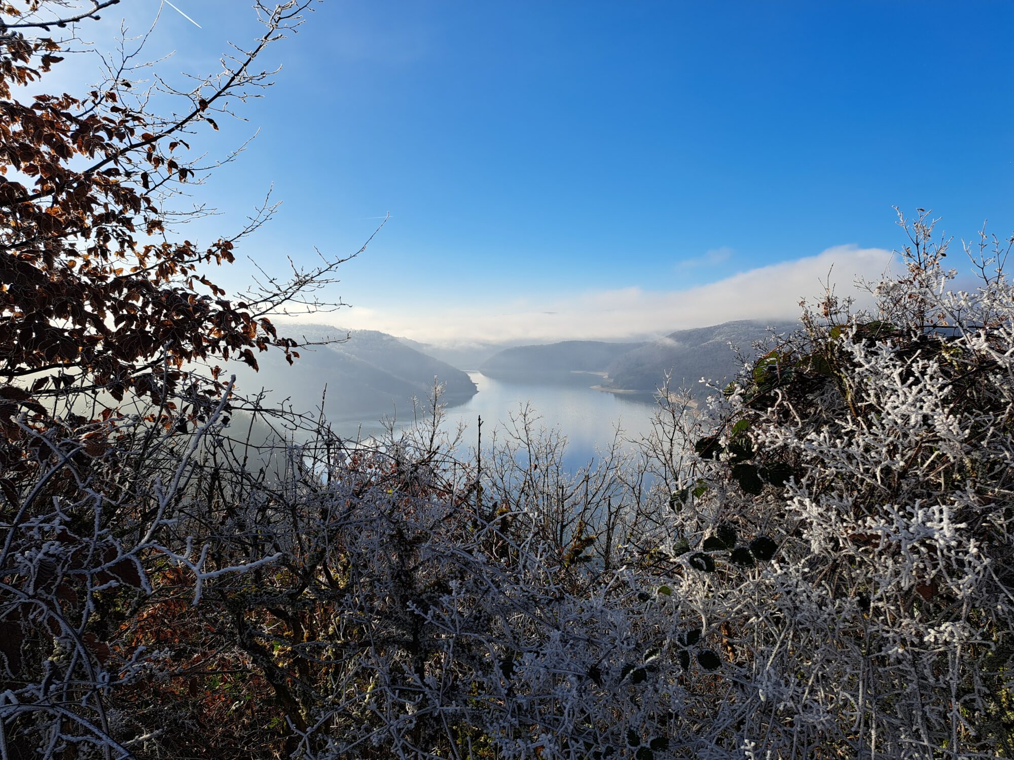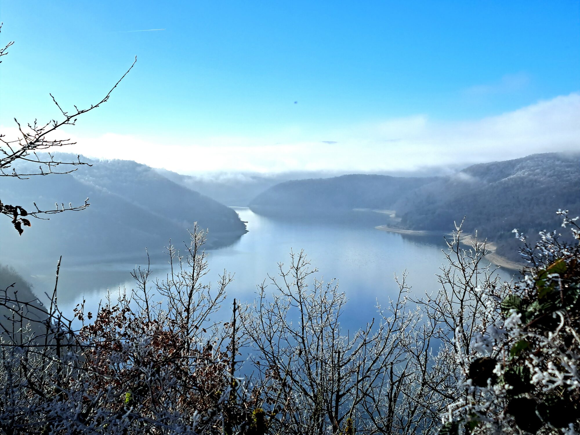 Pas avant toutefois une halte au bien nommé belvédère du Regardoir, où le lac de Vouglans s’étire comme un long serpent mi-fris mi-gelé.